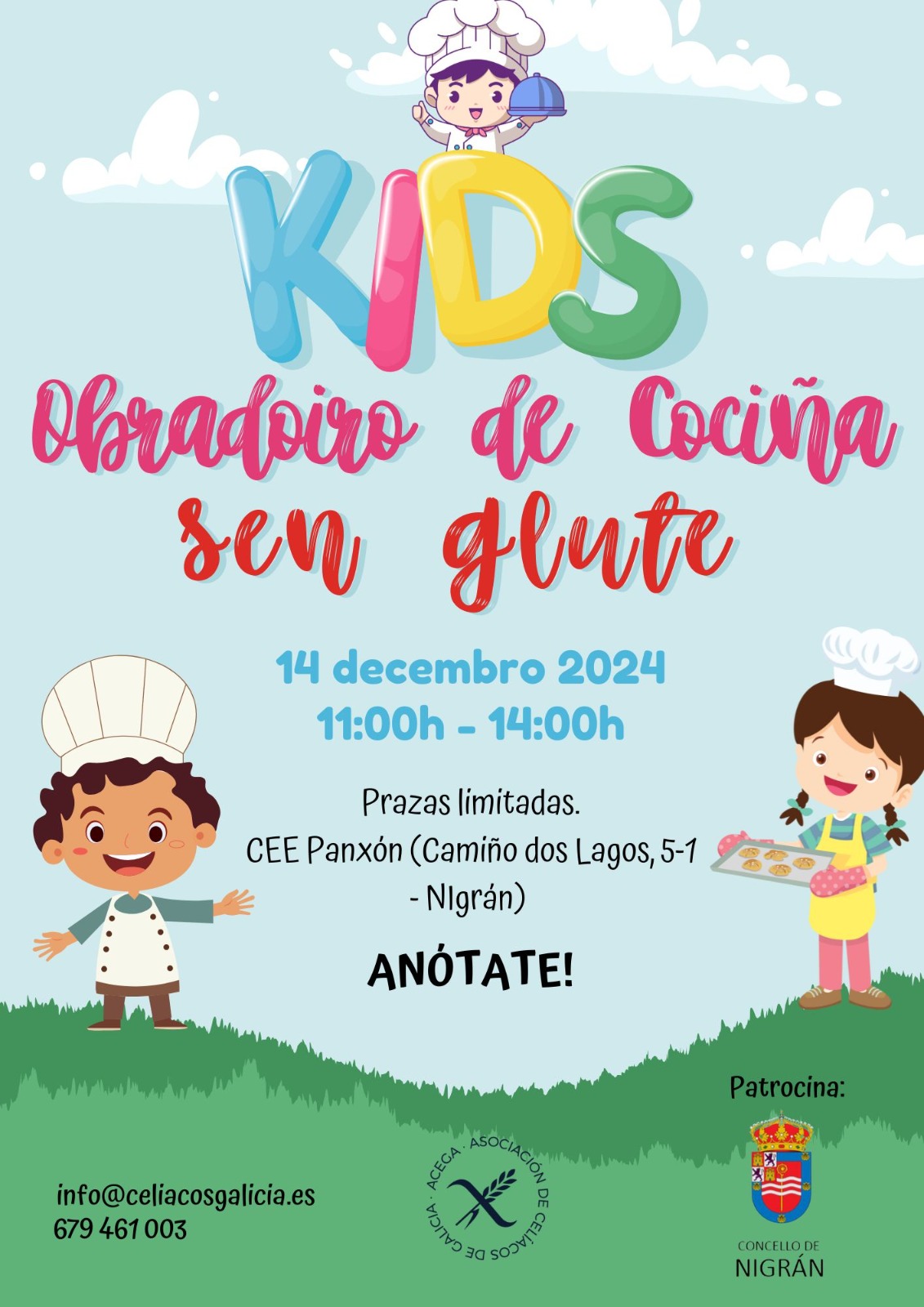 Nigrán, 09/12/24.- O Concello de Nigrán e a ‘Asociación de Celíacos de Galicia’ (ACEGA) volven a unirse para ofrecer o sábado 14 de decembro un obradoiro de cociña sen glute dirixido prioritariamente a rapazada coa doenza (de 6 a 12 anos) e empadroada no municipio. O obradoiro, encadrado na programación de Nadal do Concello, terá lugar de 11:00 a 14:00 horas no CEE de Panxón e é preciso inscribirse previamente nun formulario web en www.nigran.es Para máis información está o teléfono 679461003 ou o mail info@celiacosgalicia.es